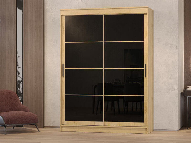 - Шкаф-купе Гранд-1 1600 Дуб Вотан-двери Лакобель черный