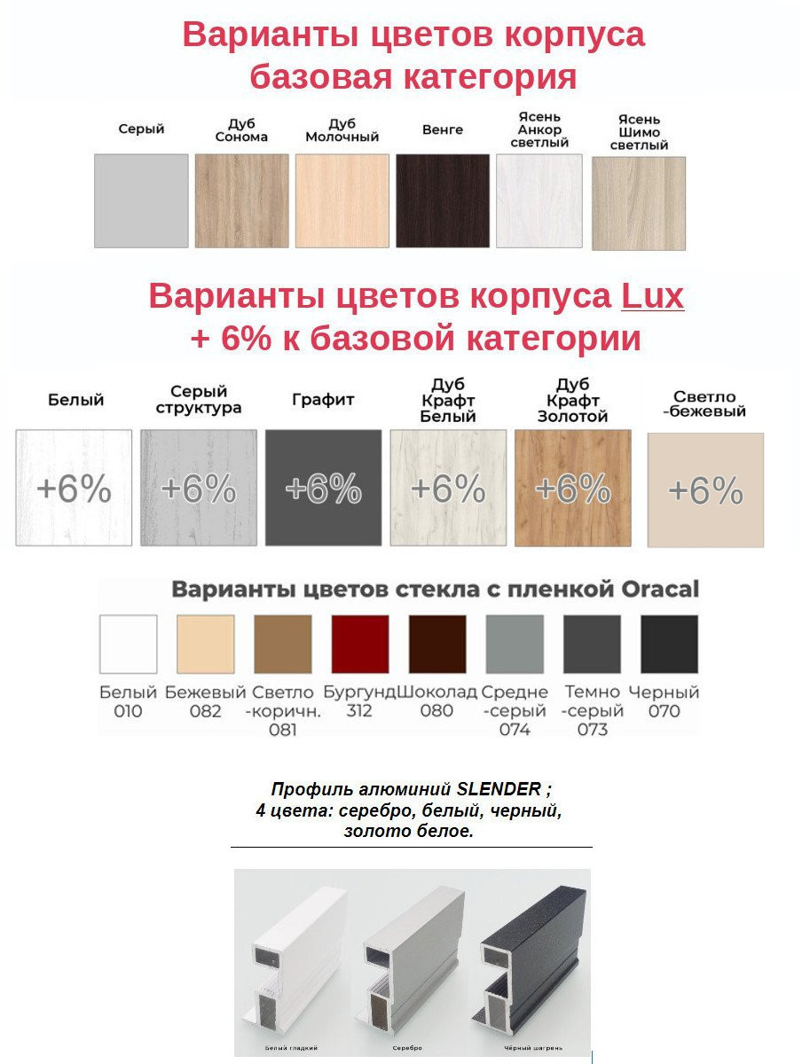 Профиль алюминий SLENDER: 4 цвета: серебро, белый, черный, золото белое.