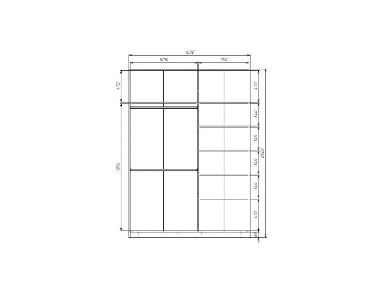 - Шкаф-купе Max МШ-25-6-18-22 пленка Oracal светло-серая