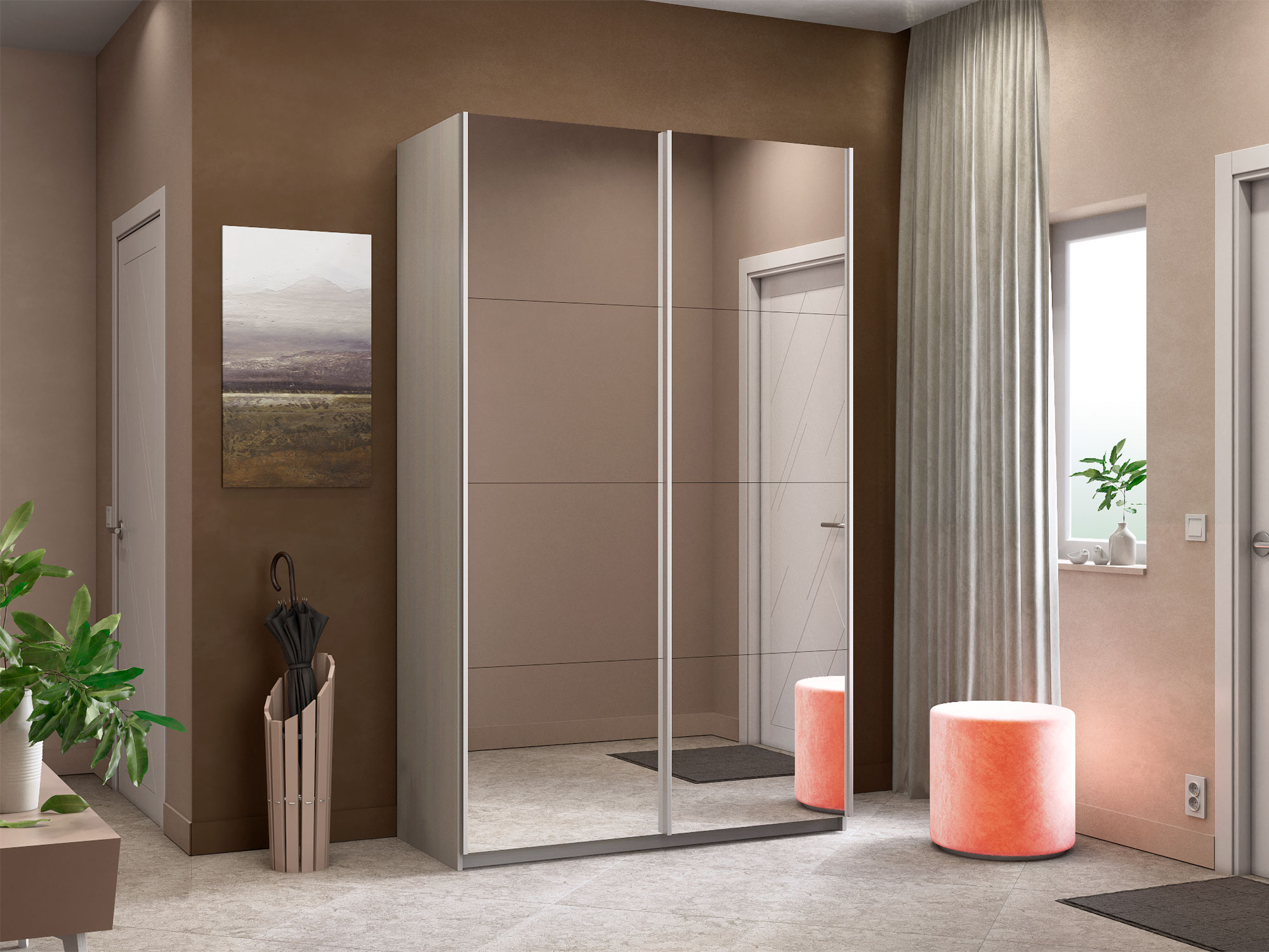 Шкаф-купе Прайм 2-х дверный 1400 два зеркала Ясень Анкор Светлый