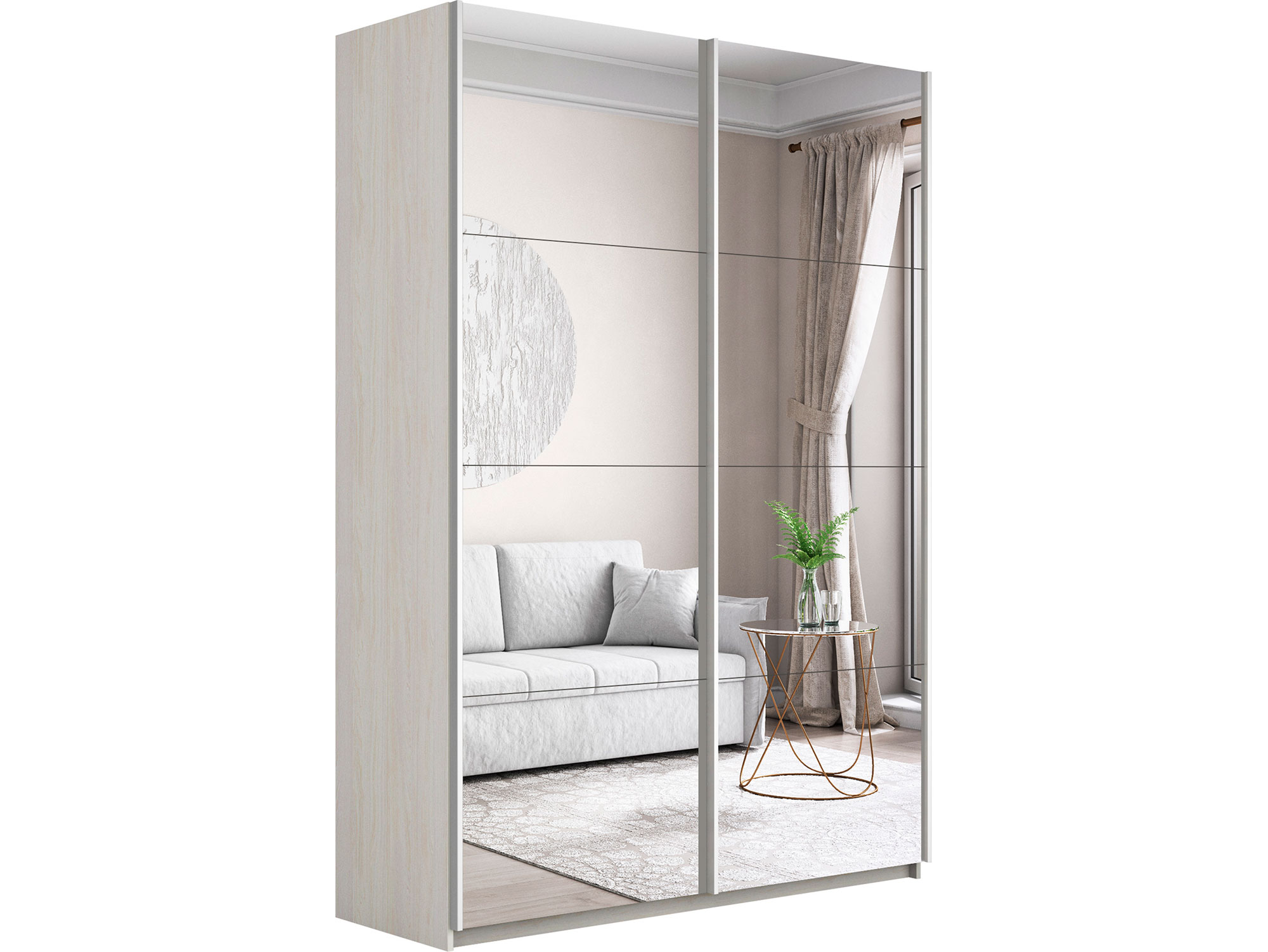 - Шкаф-купе Прайм 2-х дверный 1400 два зеркала Ясень Анкор Светлый
