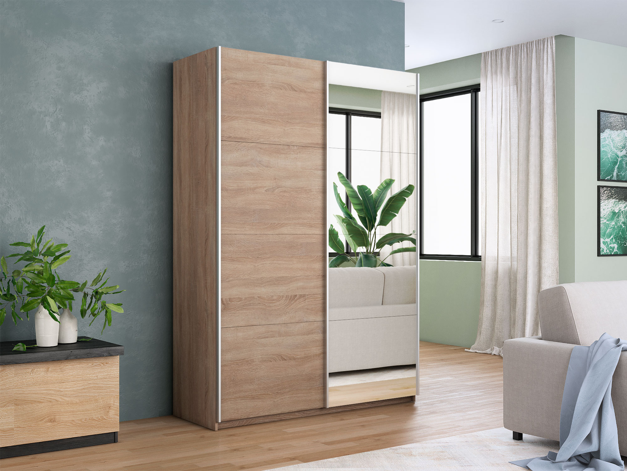 Шкаф-купе Прайм 2-х дверный 1400 Зеркало/ДСП Сонома