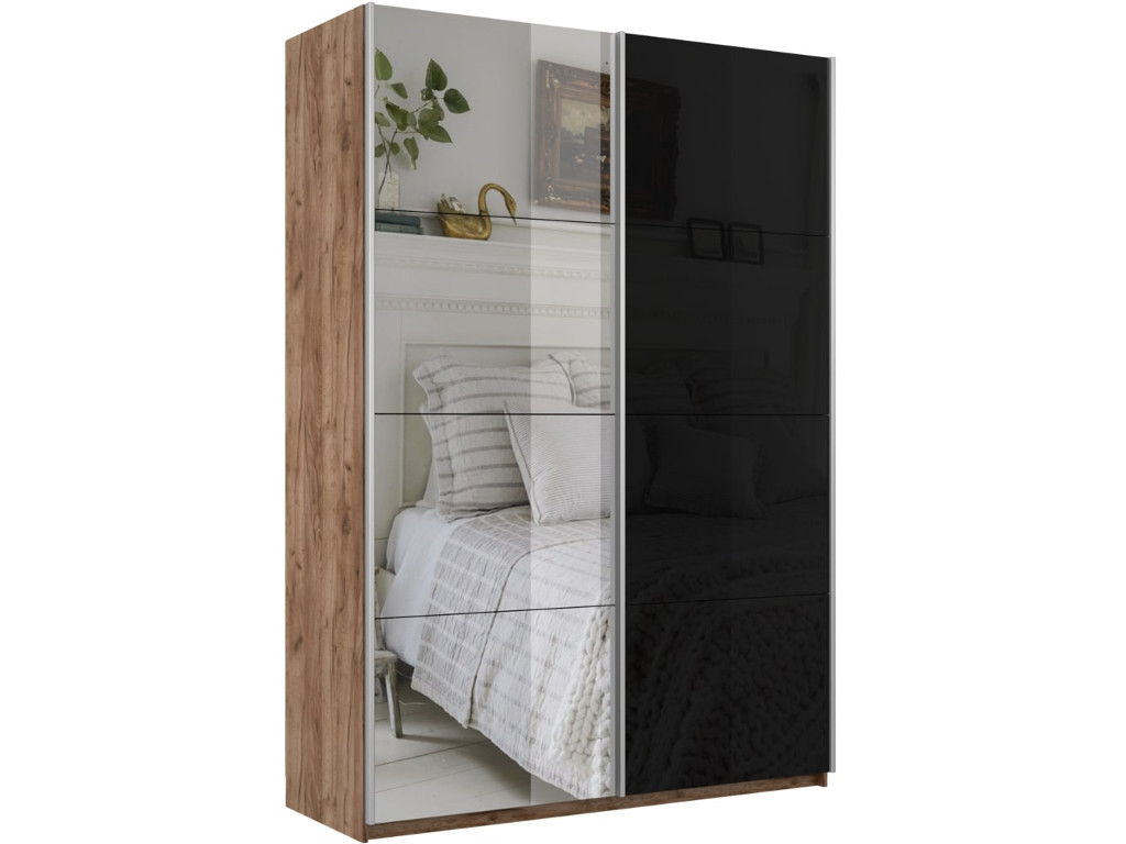 Шкаф-купе Прайм 2-х дверный 1400 Зеркало/Стекло Черное Крафт табачный