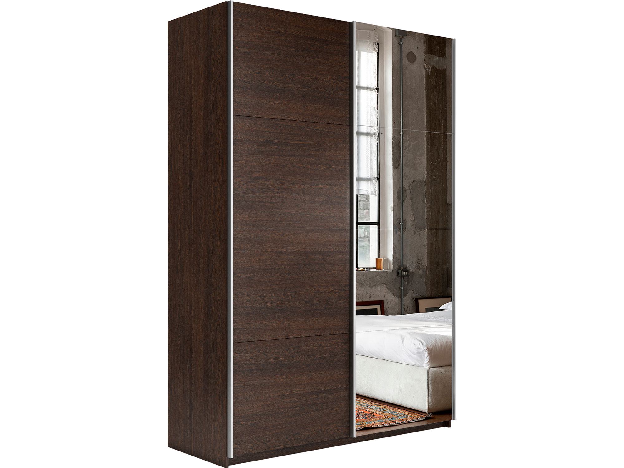 - Шкаф-купе Прайм 2-х дверный 1600 Зеркало/ДСП Венге