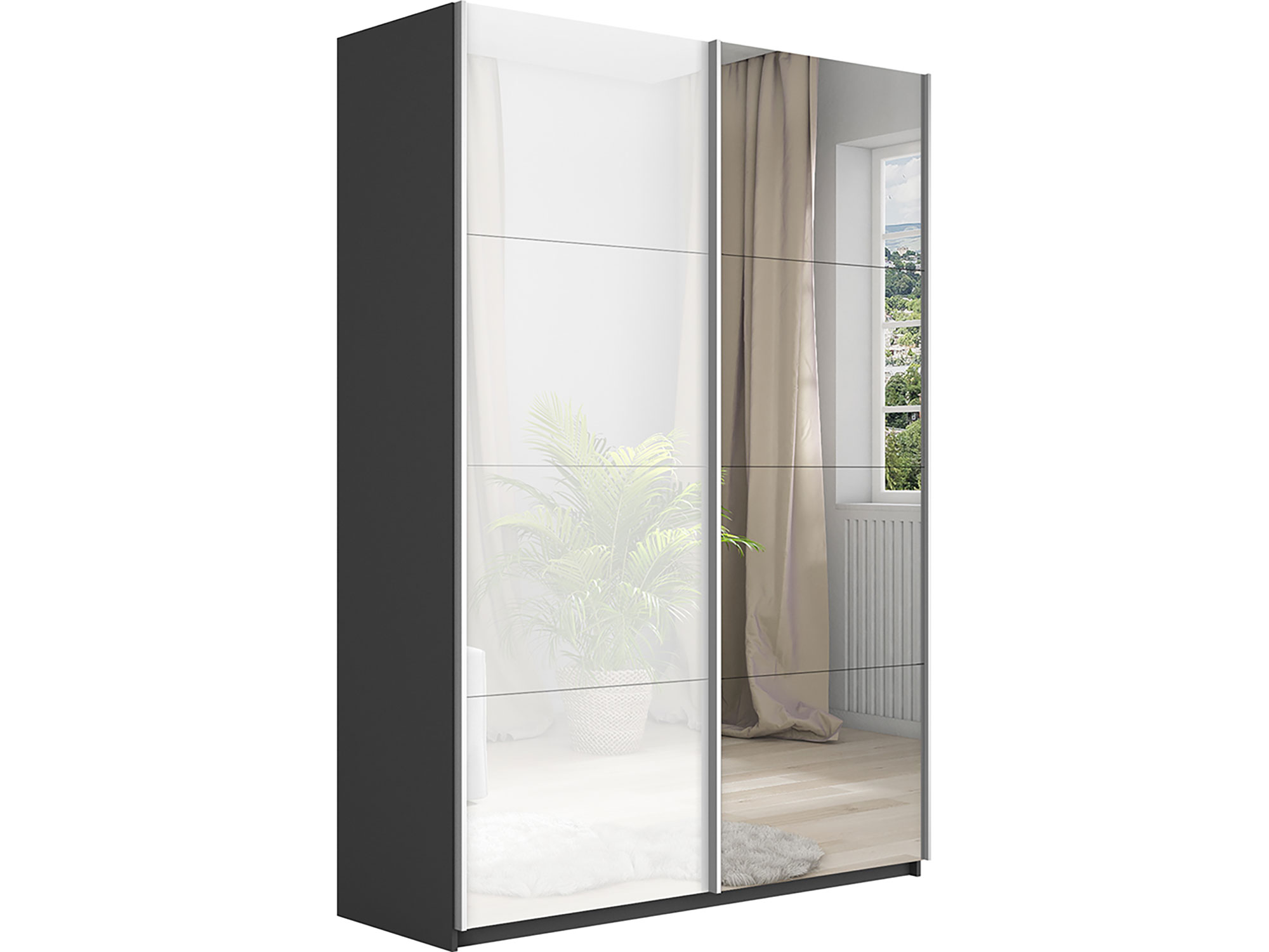 - Шкаф-купе Прайм 2-х дверный 1600 Зеркало/Стекло Белое Серый Диамант