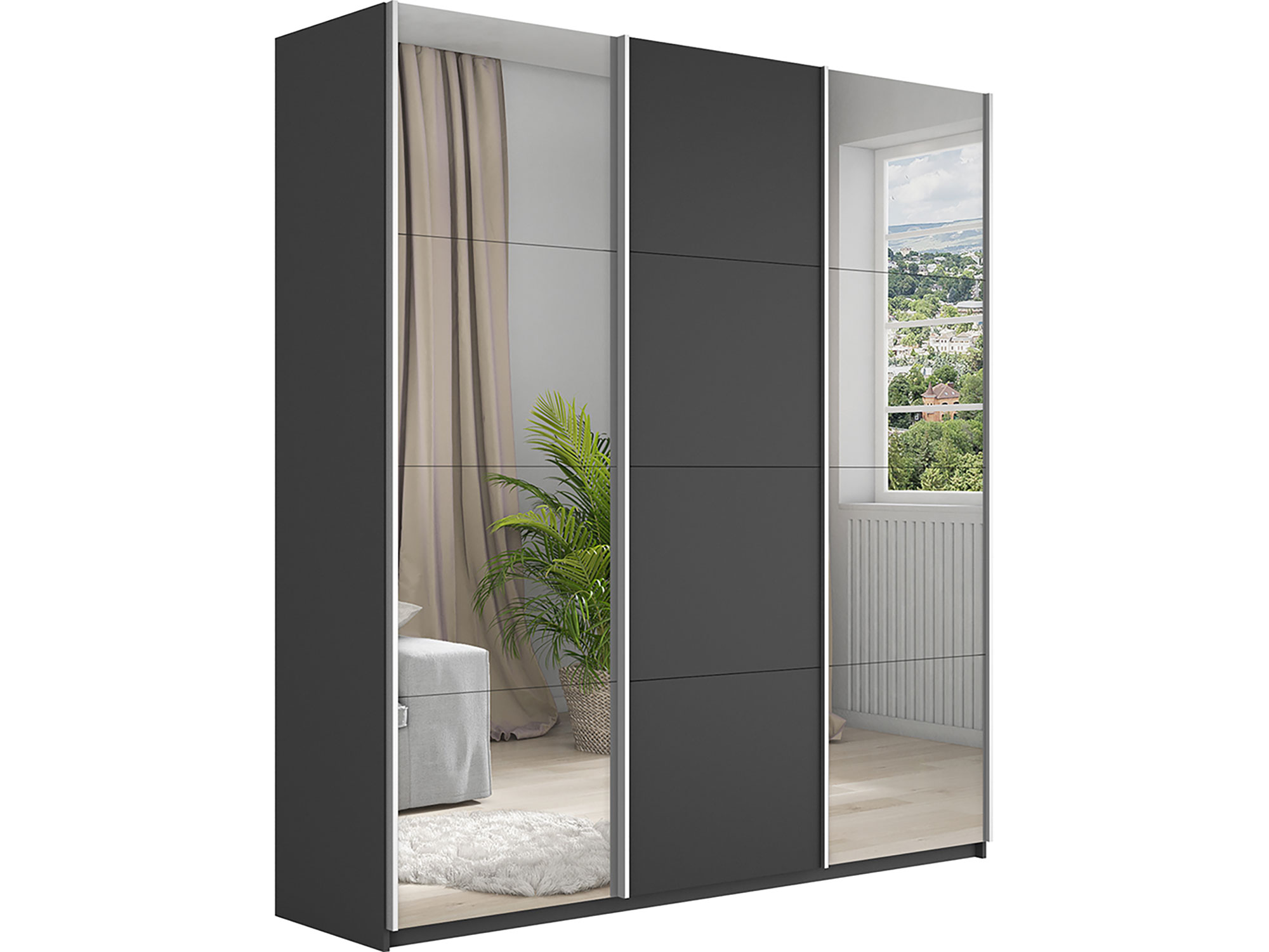 - Шкаф-купе Прайм 3-х дверный 1800 два Зеркала/ДСП Серый Диамант