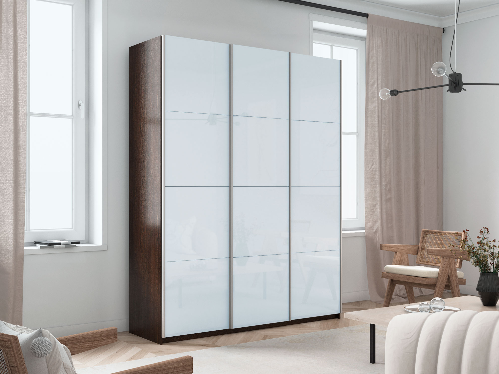 - Шкаф-купе Прайм 3-х дверный 1800 три стекла белые Венге