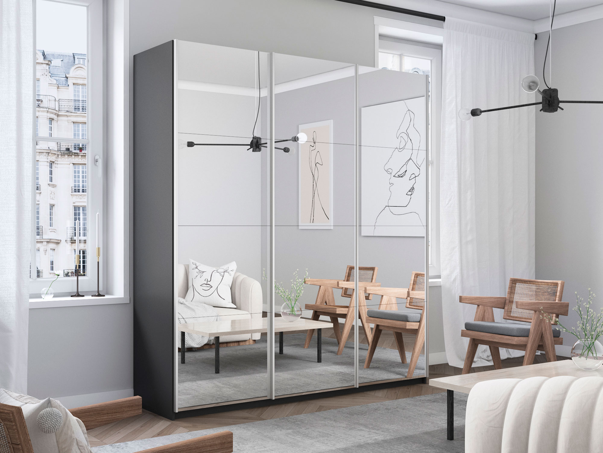 - Шкаф-купе Прайм 3-х дверный 1800 три зеркала Серый Диамант
