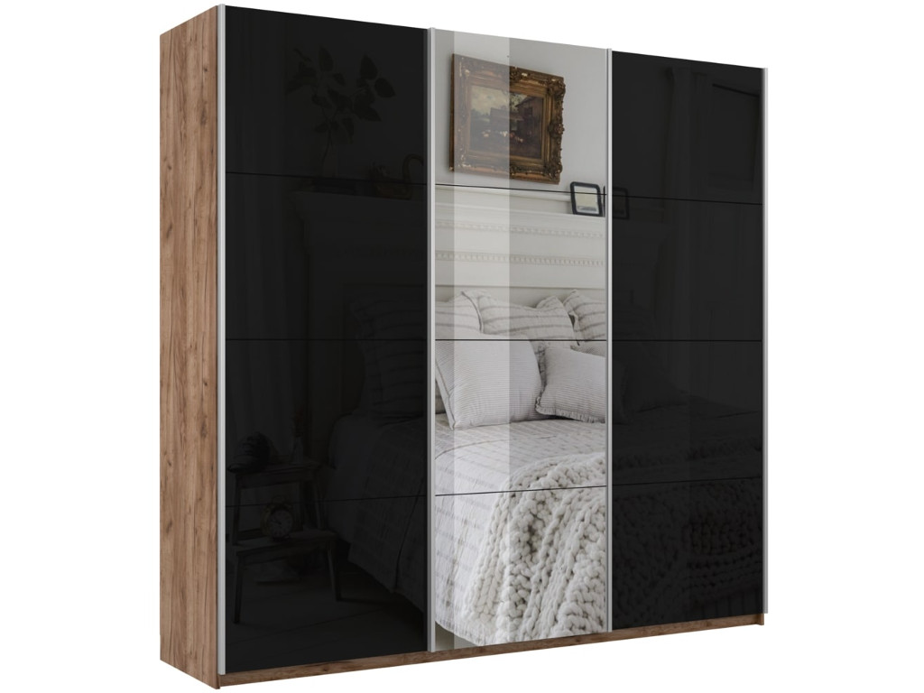 - Шкаф-купе Прайм 3-х дверный 2100 два Стекла Черные/Зеркало Крафт табачный