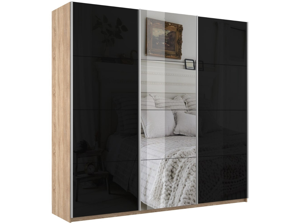 - Шкаф-купе Прайм 3-х дверный 2100 два Стекла Черные/Зеркало Сонома