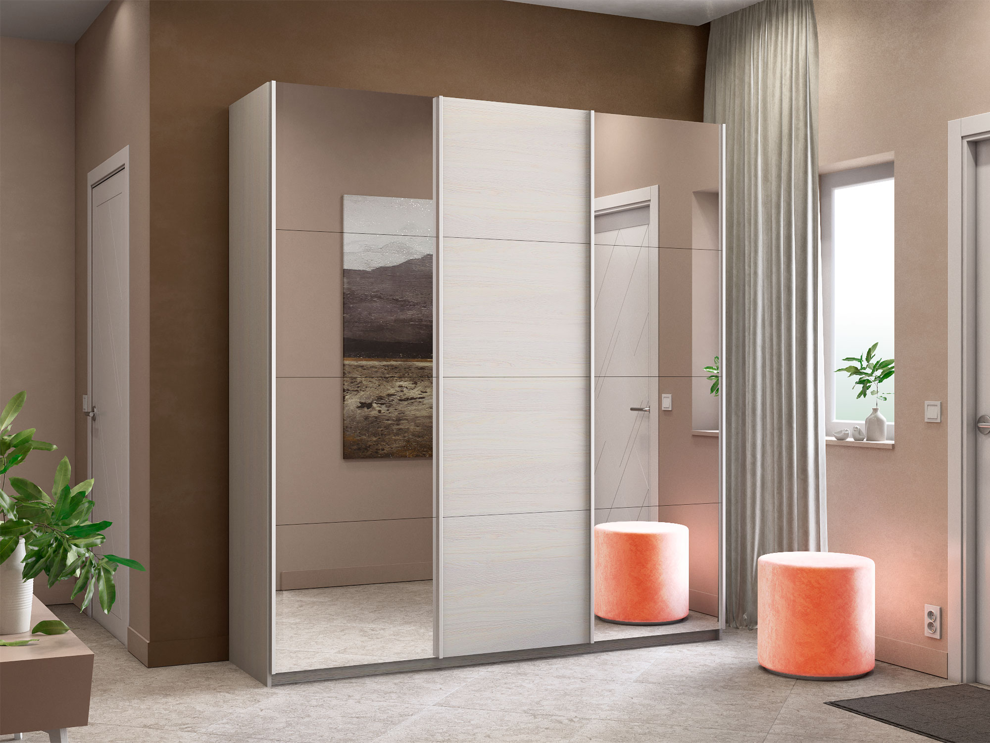 - Шкаф-купе Прайм 3-х дверный 2100 два Зеркала/ДСП Ясень Анкор Светлый