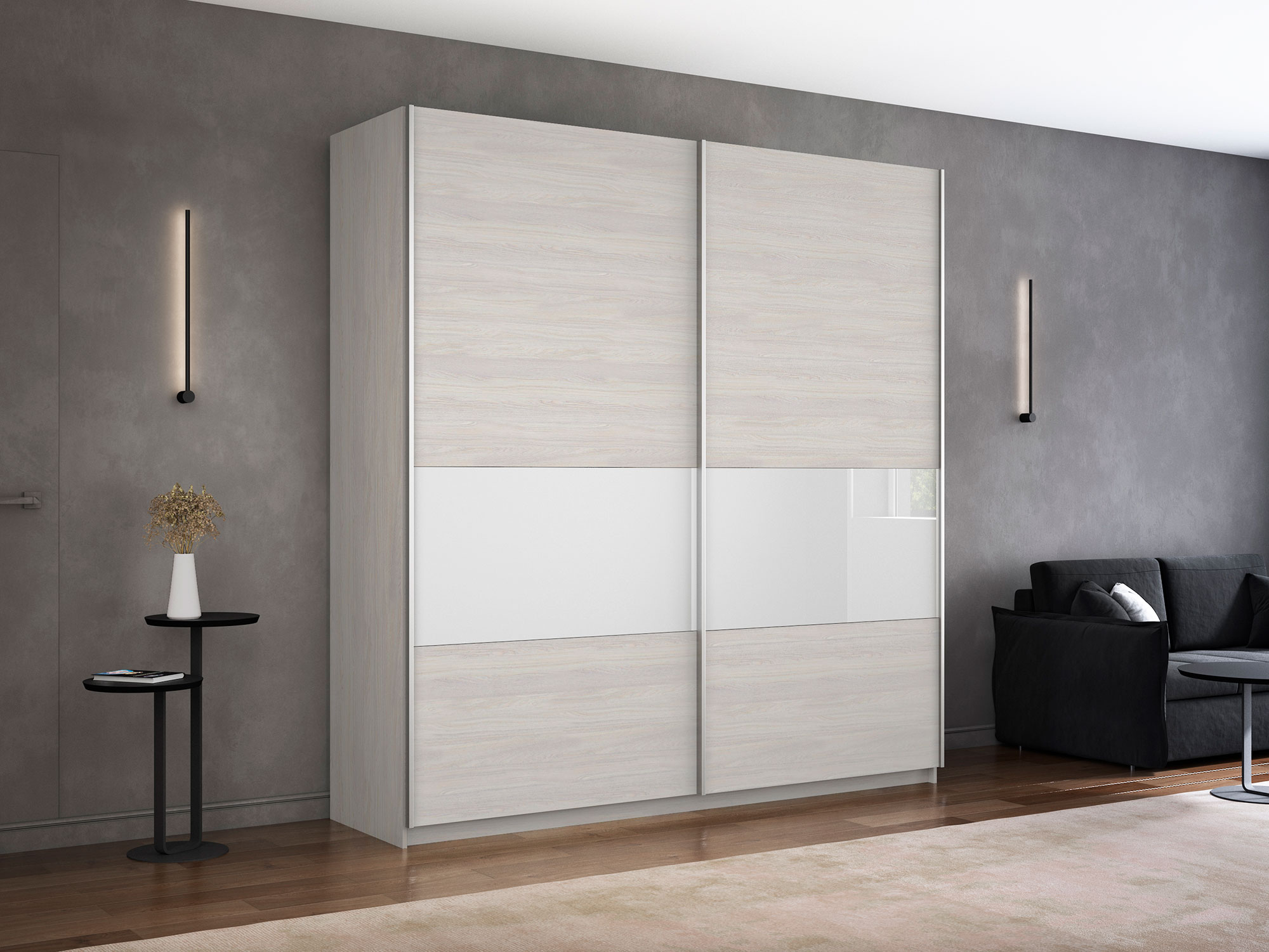 Шкаф-купе Прайм Широкий 2-х дверный ДСП/вставки Стекло Белое Ясень Анкор Светлый