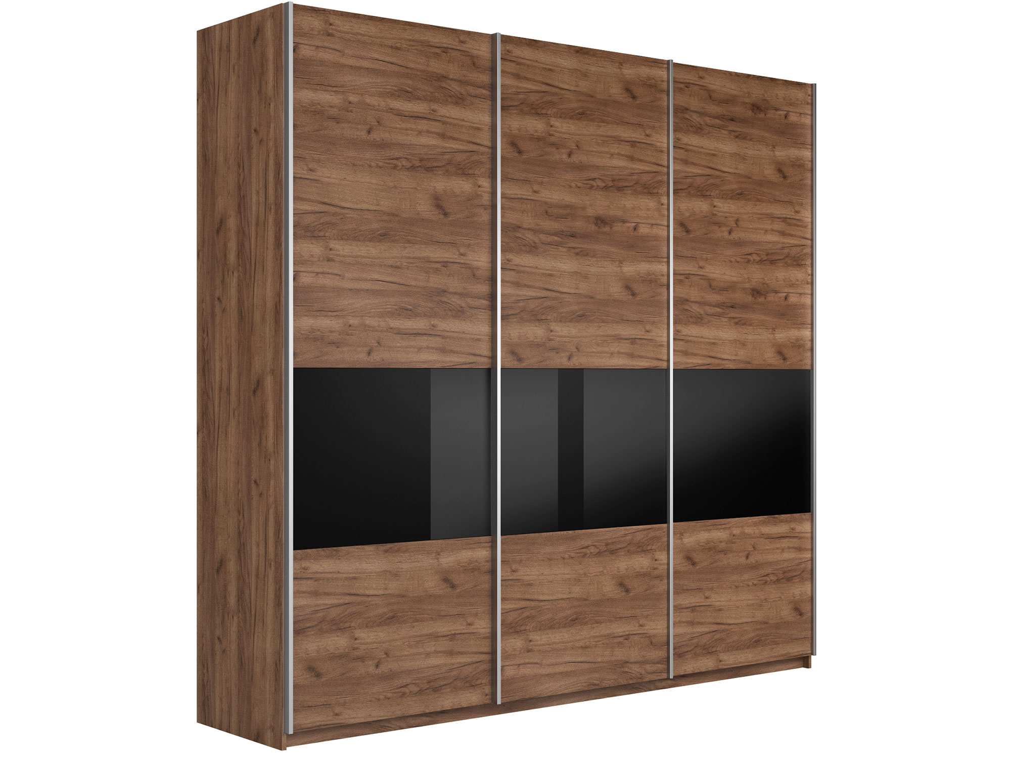 Шкаф-купе Прайм Широкий 3-х дверный ДСП/вставки Стекло Черное Крафт табачный