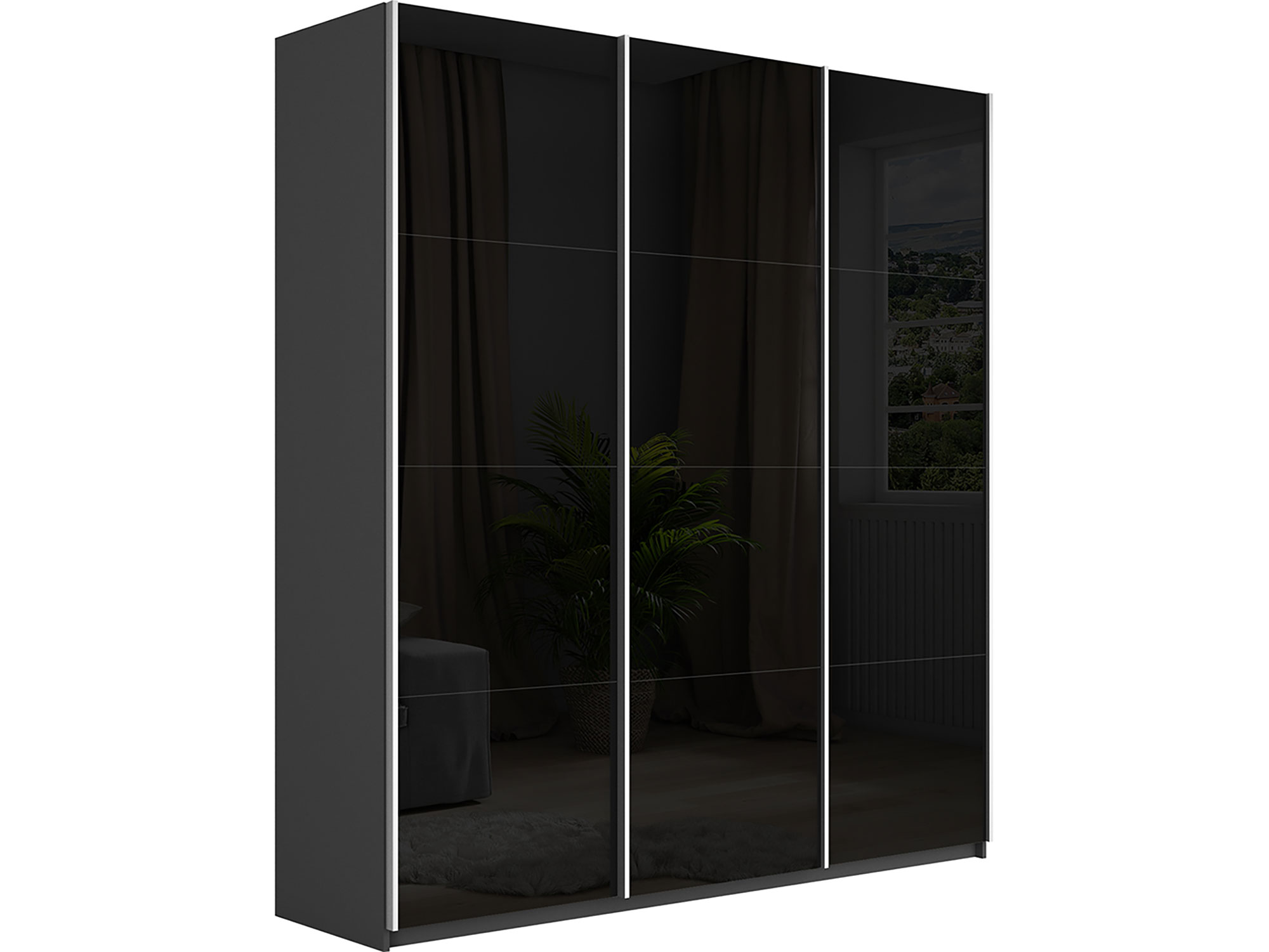 Шкаф-купе Прайм Широкий 3-х дверный три черных стекла Серый Диамант