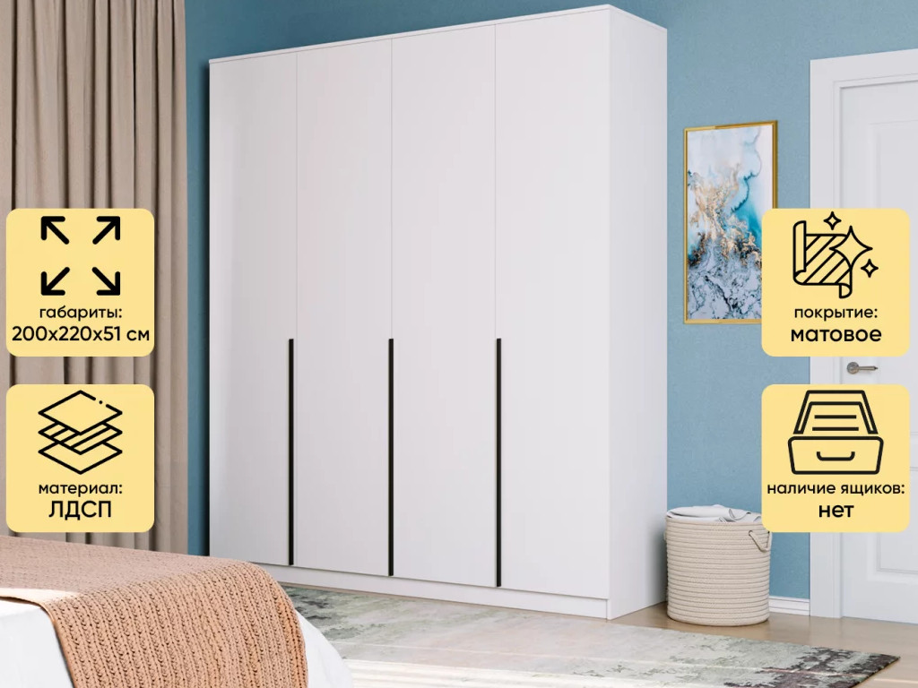 - Шкаф Монблан New распашной 2000 4-х дверный Белый Шагрень