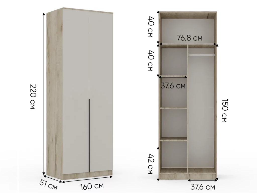 - Шкаф Монблан New распашной 800 2-х дверный Кашемир