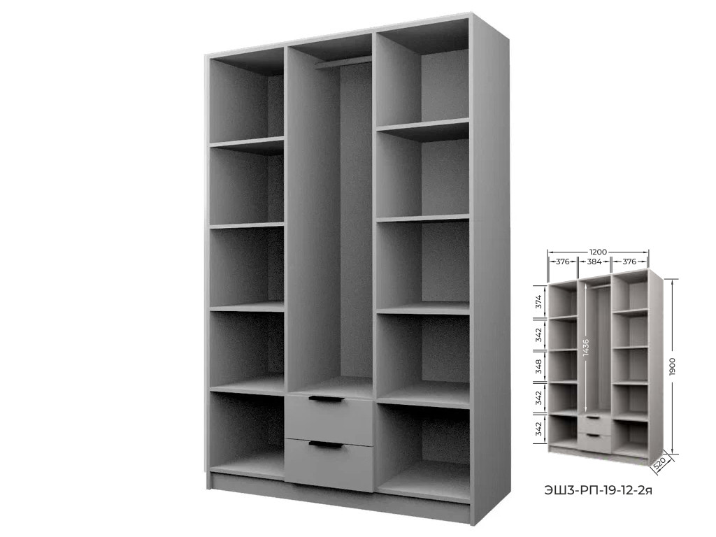 Шкаф с 2 ящиками Экон ЭШ3-РП-19-12-2я одно зеркало