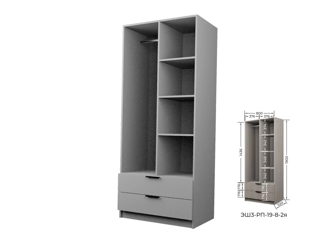 Комплект: ЭШ3-РП-19-8-2я, Шкаф с 2 ящиками + два ЗС-19-2я,Зеркало для шкафов ЭШ 1900 мм