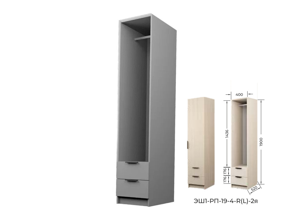 Шкаф с 2 ящиками со штангой Экон ЭШ1-РП-19-4-R-2я