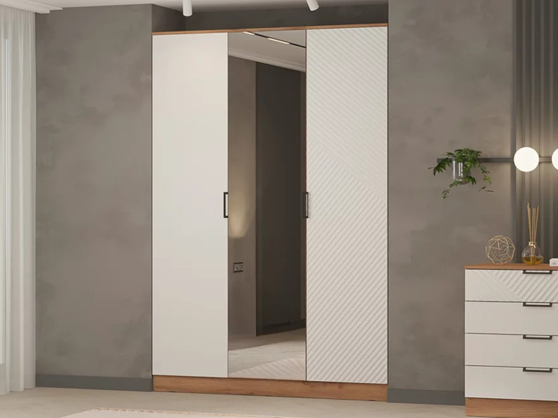 - Шкаф трехстворчатый Леон Дуб бунратти/Белый