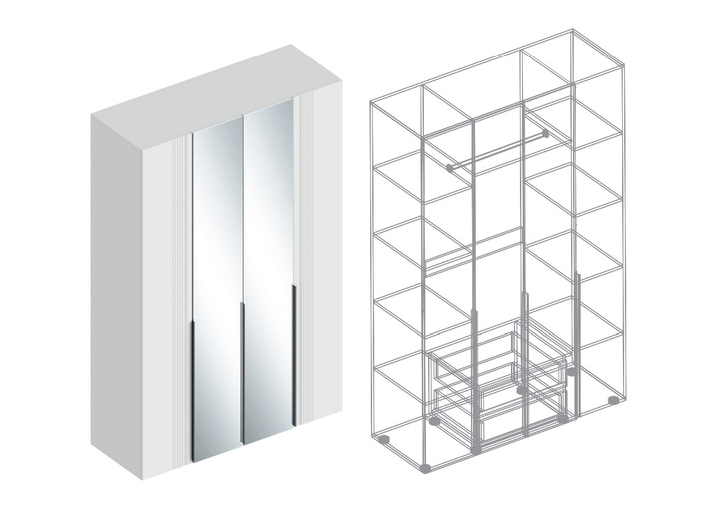 - Шкаф Вита 4-створки с зеркалом белый лофт