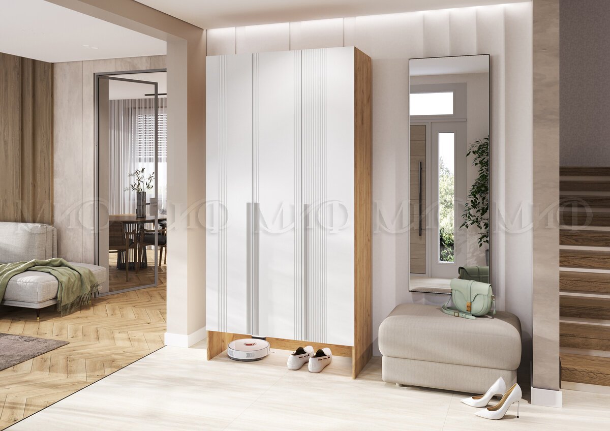 - Прихожая Луна шкаф 3-х створчатый Браш Вайт, Дуб Крафт