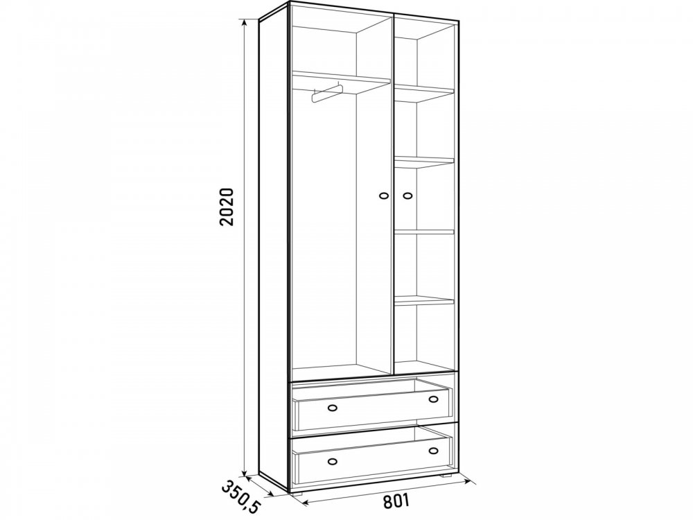Размер ВхШхГ, мм: 2020х801х350