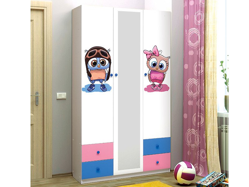 Шкаф трехдверный с зеркалом и фотопечатью Совята 3.1